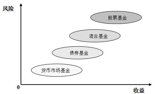 根據(jù)《證券投資基金運作管理辦法》對基金類別的分類標(biāo)準(zhǔn),60%以上的基金資產(chǎn)投資于股票的為股票基金;80%以上的基金資產(chǎn)投資于債券的為債券基金;僅投資于貨幣市場工具的為貨幣市場基金;投資于股票、債券和貨幣市場工具,但股票投資和債券投資的比例不符合股票基金、債券基金規(guī)定的為混合基金。這些基金類別按收益和風(fēng)險由高到低的排列順序為:股票基金、混合基金、債券基金、貨幣市場基金,即股票基金的風(fēng)險和收益最高,貨幣市場基金的風(fēng)險和收益最低。